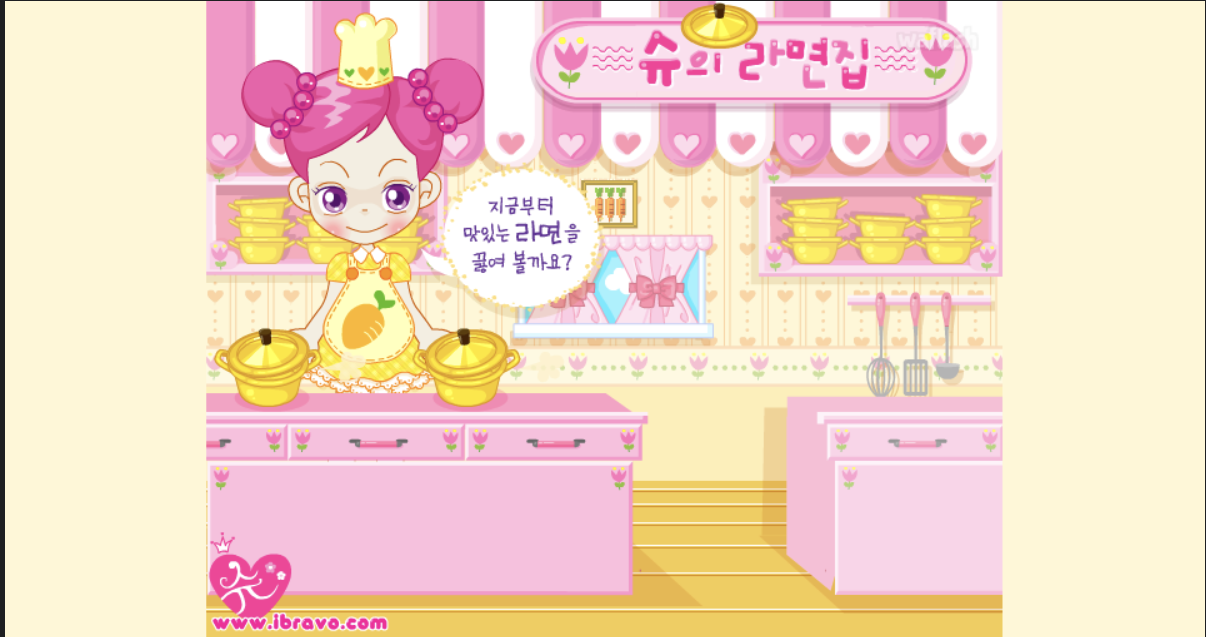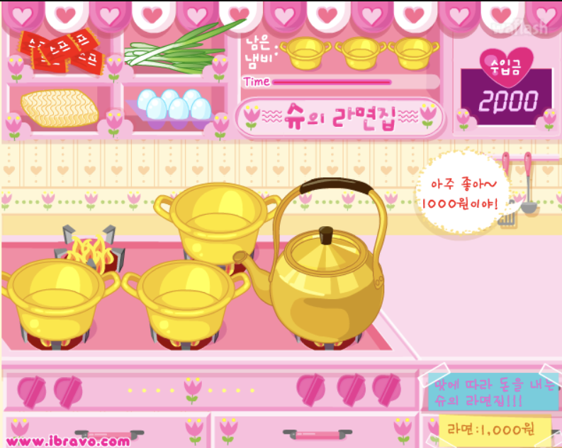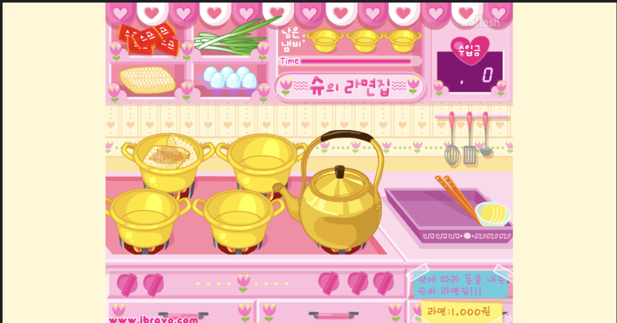 데스크탑은 물론 모바일에서도 즐길 수 있는 아이부라보의 슈의 라면집 플래시 게임입니다. 게임 방법 1. 냄비에 물을 부어야 요리를 시작할 수가 있다. 물을 붓기 위해서는 주전자의 손잡이를